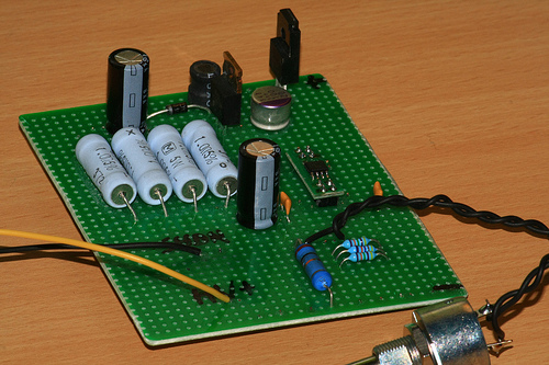 The design used here, a switching power supply based on the MAX1771 chip is based on Mike Harrison's Nixie power supply, which is shown below for convenience. Mike's webpage contains good explanations on the circuit's functioning and helpful advice on how to build it.